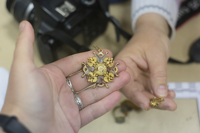 Особое место занимает коллекция орденов и медалей XVIII-XIX веков, в том числе ордена Станислава двух степеней и святой Анны I степени. В составе клада также найдены украшения, кресты, иконы-складни. Кроме того, отдельно лежали два комплекта предметов с серебряной посудой, среди них - ладья-ковш, подстаканники, а также кубок Екатерины II и два бокала с императорскими вензелями.