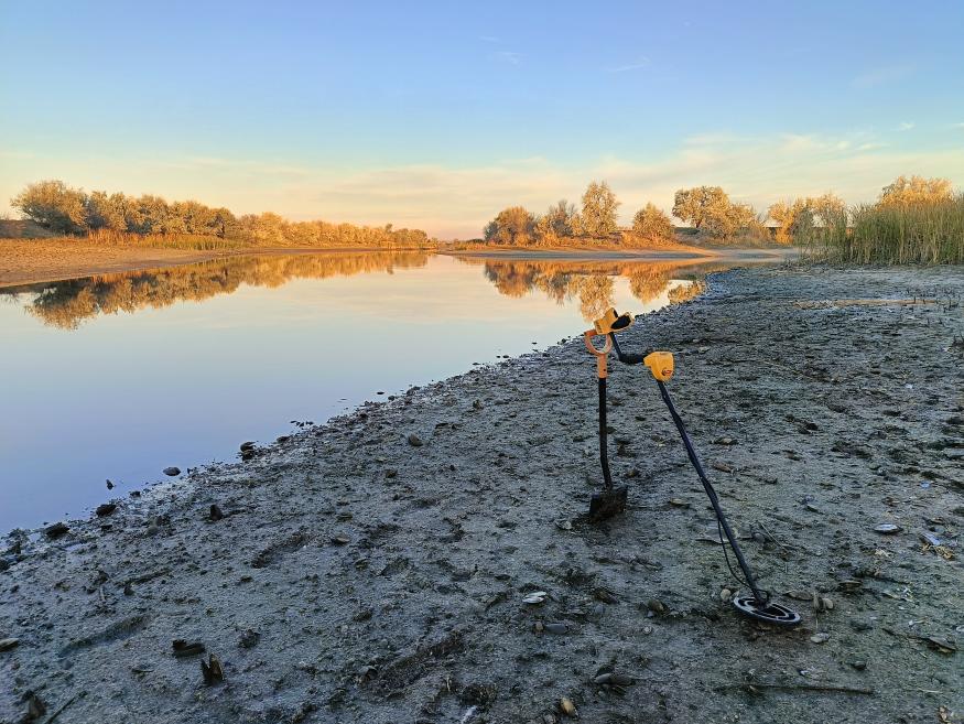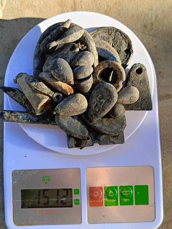 Сезон рыбалки на карася подходит к завершению. Возможно это последний выезд этого сезона. Уровень воды очень снизился. Караси скатились в ямы и там затаились. Вдобавок сегодня дул сильный ветер. Поэтому взял прибор и прошелся по отступившему урезу воды. Всё, что было утеряно летом, сегодня вернулось с избытком. Блёсны, грузила и кормушки. Поднялся на обрыв и попал на небольшую рассыпушку - три советских монетки лежали на квадратном метре. Сигналы у всех были одинаковые - на одно деление ниже язычка пивной банки. Попались три карася. Дома для интереса взвесил найденный свинец. Получилось полтора килограмма. Это по расценкам приёмки 100 рублей. А поездка обошлась в 900 рублей. Вот почему аськи с рук как стоили 10тр. десять лет назад, так столько же стоят и сегодня. Впрочем полученные эмоции от дикой природы, ветра и солнца, заряд бодрости и хорошего настроения намного дороже, если вообще оценимы. Свежие пожаренные караси очень вкусны.
