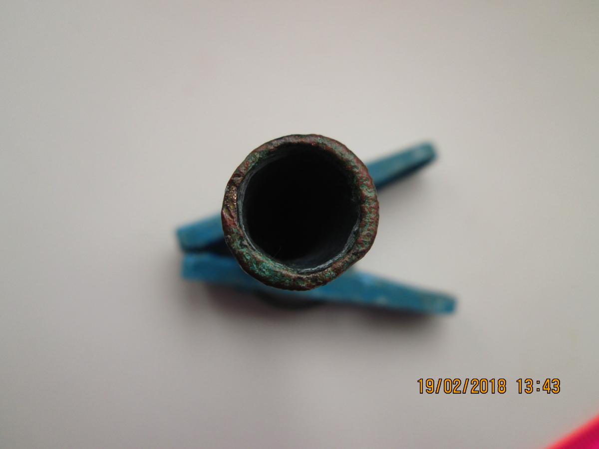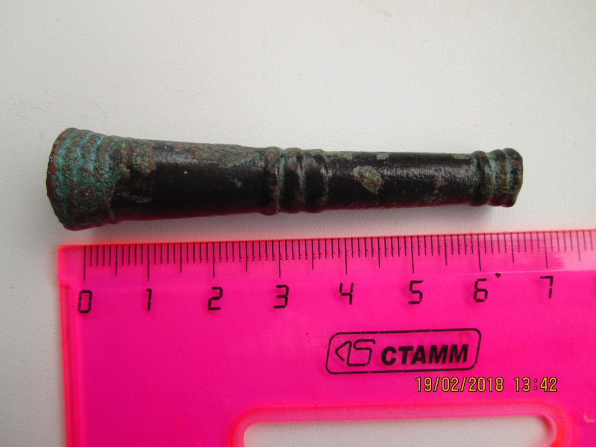Есть еще мнение, на этот предмет, якобы игольница, но это не она, так как есть отличие - у игольницы есть колпачок (обязательно), здесь его крепить не на что.