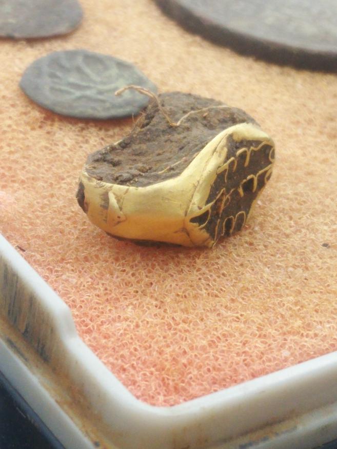 Перстень с арабскими буквами, Волжская Булгария, в серебре редкие, а в золоте и подавно. Их любят продавать, как золотоордынские.))