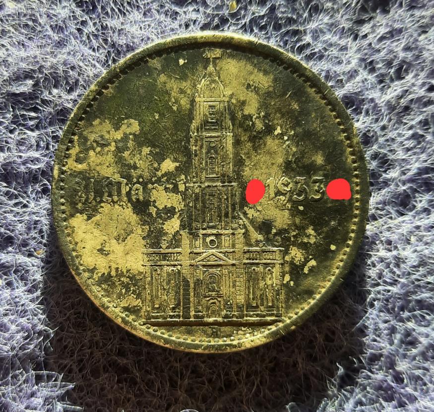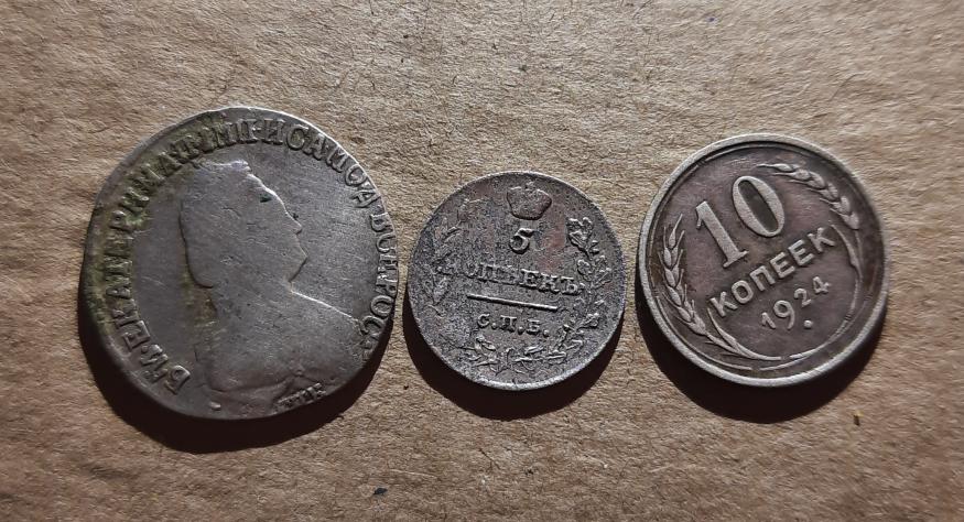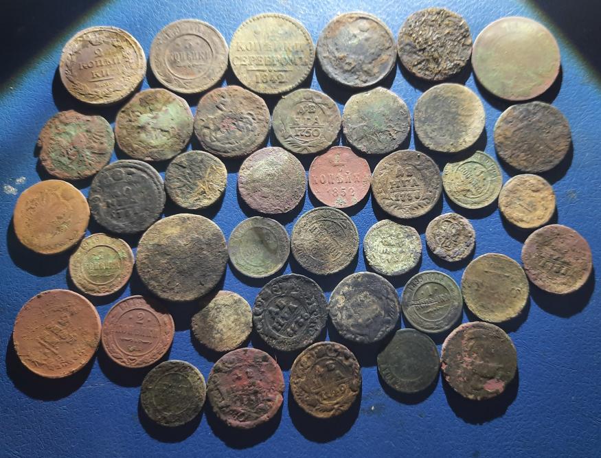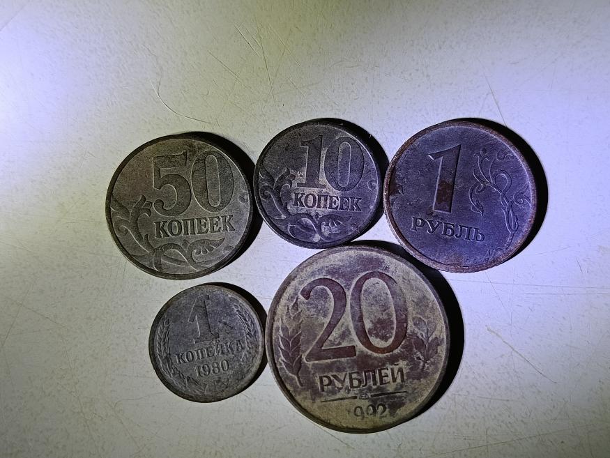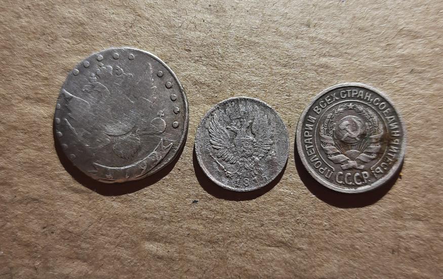 Михаил, а что это за маленькая черная монетка между советскими двушками? Она вроде как похожа на иностранную.