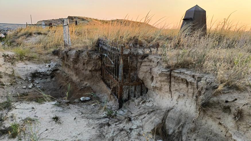 Михаил, на окружающей мой дом местности идёт нарастание грунта за счет надувного песка из поймы Волги, со дна ушедшего Хвалынского моря. Например недалеко на вершине одного холма есть старое кладбище. За 70 лет по моей оценке песка там надуло около 60 высоты. То есть татарское наследие уже очень глубоко находится, никак не вызвонить. На фото виден срез, это трактором снимали крышу с залежей песка, карьер там. Когда гробы стали падать вниз, люди возмутились и власть была вынуждена закрыть этот карьер.