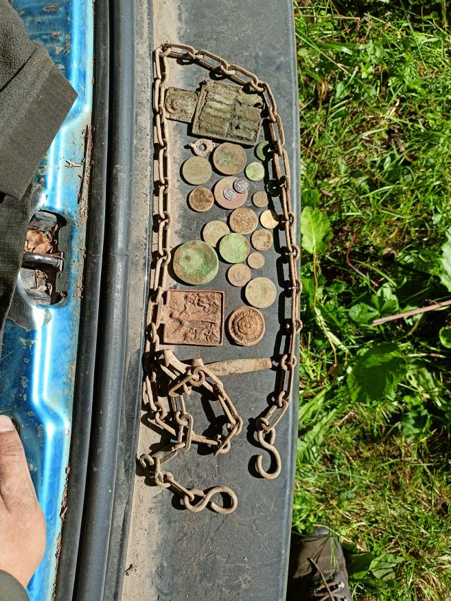 Цели с разной глубины ,чешую глубже 5-7 см не поднимал)) пятак Екатерины Алексеевны максимум поднимал со штыка при хорошем сигнала понятном, гривенник тож примерно со штыка чуть меньше при понятном сигнале но может он лежал и выше где нить в боку был просто ямку такую сделал)) крупную икону с двух штыков при понятном сигнале. Не разу чешую при сомнительных сигналах из глубины более 7 см не поднимал))ну может разок но там была крупная новгордка как гривенник размер может там см 15 она была сигнал все равно был цветной без черноты и очень слабый. Распашка гривенников была все которые лежали на глубине до 20 см выкопал ,потом шурфанул и на границе чернозёма и глины ещё примерно столько же поднял более 100 штук было и место можно сказать чистое ну так гвоздочки только))Всё равно отличные находки! Даже серебрушка попалась! А вдруг она уделка или подражание? Было бы здорово! Вы с какой глубины поднимаете