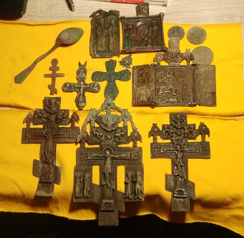 У нас с ночи зарядил дождь, и я зря заряжал аккумуляторы. Но перед этим в субботу ходил на один холм поблизости. Увидел окопы, холм перепахан осколками бомб и на нем были нехилые пострелушки. Посмотрел годы, выходит с холма в 1919 году белые выбили героических красных защитников, а в 1942 его бомбили немцы, тут была вторая линия или заградотряд. Из гражданского нашел ложку выпуска 1860-1930 и рядом лежали две пятачка, 1930 и 1932 годов. А в нескольких метрах нашел носовую часть авиабомбы, от нее остался кончик с взрывателем и раскрывшаяся от взрыва розочка чугуна. Всё кругом осколками перепахано. Вернулся домой с недобрыми чувствами к немцам-фашистам.