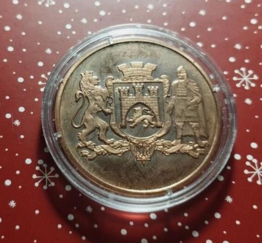 Если обобщить, то это серийный латунный жетон с гербом города и трисколионом, посвящённый 750-летию основания Львова местным племенем кельтов, в дальнейшем самоназвавшихся "западэнцями".