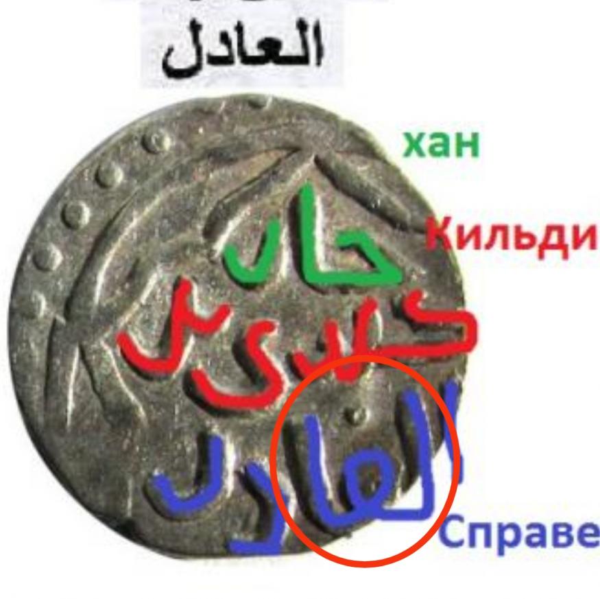 В слове "Справедливый" есть буква или часть слова и это на монетах не одного хана, я ее ассоциирую визуально с английской буквой *W*, только она растянута ну или широкая на Дирхемах, мне она нравиться , и сразу на нее внимание обращал, теперь я точно знаю , что это )