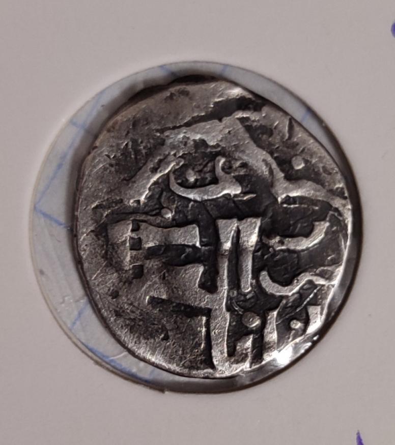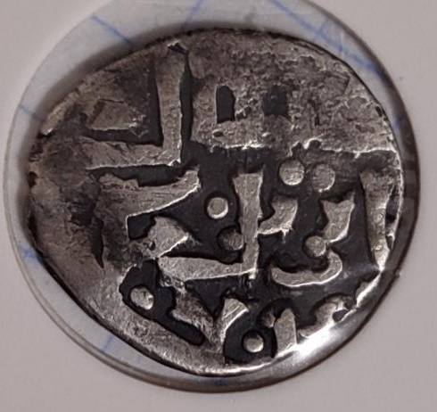 Как видно из рисунка, в поле монеты не попали значимые части легенд штемпелей. Дефект монеты сложился из двух причин. Во первых, она должна соответствовать весовой норме. Возможно перед чеканом молотобоец недостаточно ее расплющил чистовым подготовительным штемпелем и она имеет недостаточный диаметр при весовой норме. Либо вес монеты урезан в правление следующих ханов до новой весовой нормы. И при обрезке монеты с нее снесли часть легенд.Во вторых при чеканке монеты была нарушена центровка реверса.