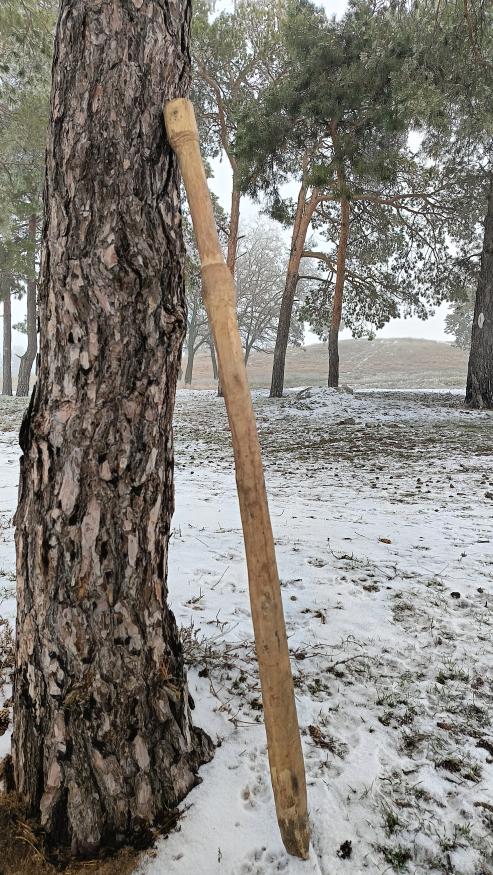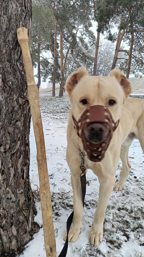 Намордник собачке не великоват?Приветствую, друзья! Я тут тоже жестоко отгрипповал в новогодние праздники. Сегодня выполз на природу полюбоваться. Собакен от неожиданности даже согласился надеть намордник. У нас после мороза и снега пришла оттепель с туманом и гололёд. Домой вернулись с находкой, двуручным деревянным мечом, которыми обычно реконструкторы дубасят друг друга. По видимому по пьяной лавочке один реконструктор нехило отоварил другого, так что тот бросил свой дрын и ломанулся в сторону ближайшего травмпункта. Буду теперь в гололёд гулять с этой палкой и собакой. А то жена жмётся, шведские палки не покупает.