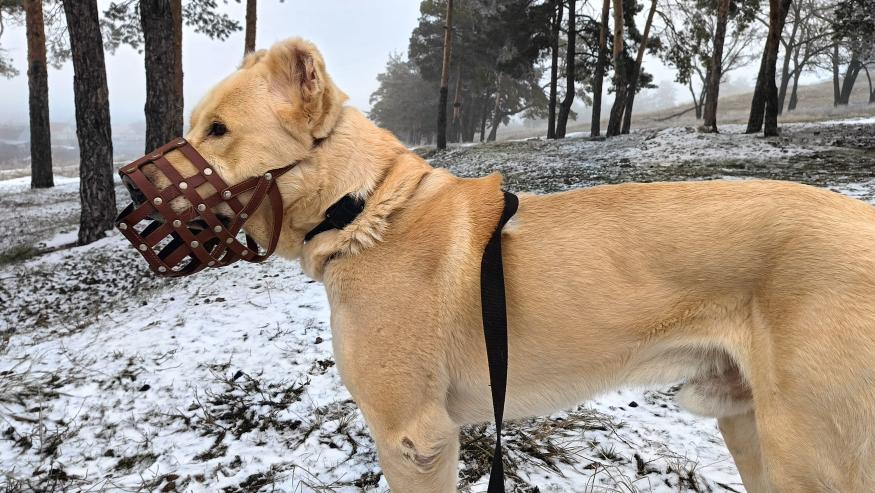 Этот собакен отказывается носить намордники меньшего размера. Потому что в них неудобно гавкать и кусаться.Намордник собачке не великоват?