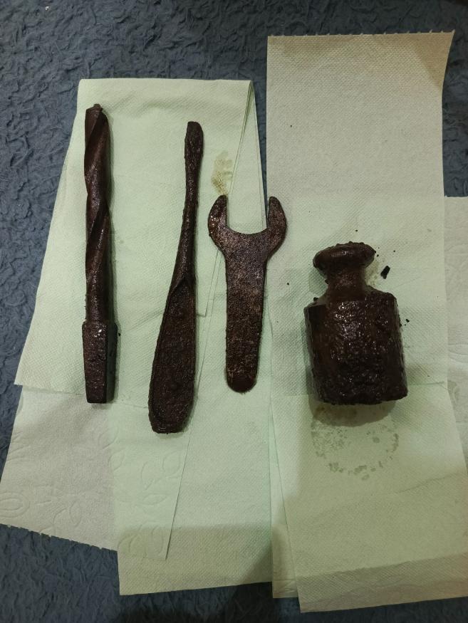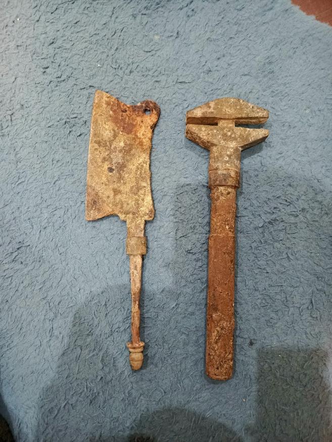 Здравствуйте, Уважаемые коллеги! Прошу вашего мнения по поводу данного инструмента. Найден в Калининградской обл., естественно получается Германия. Только вот время происхождения? То ли рейх то ли более ранний? Как вы думаете? Клейм нет, точнее скорее всего они есть, но находятся под слоем налета. Найдены в одном схроне. Спасибо!