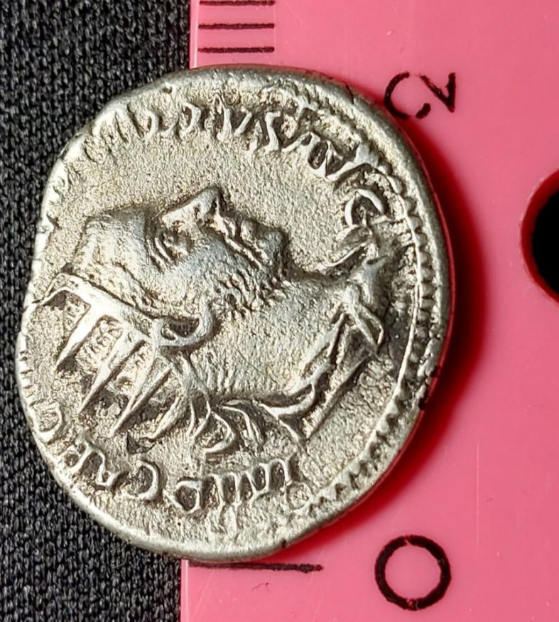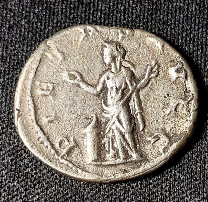 Это антониниан, а не денарий. Римская империя, Филипп I Араб, 244-249 годы. Пусть кто-нибудь уточнит монету в вильдвиндсе, а то мне некогда. Похож на сувенир, но не уверен.