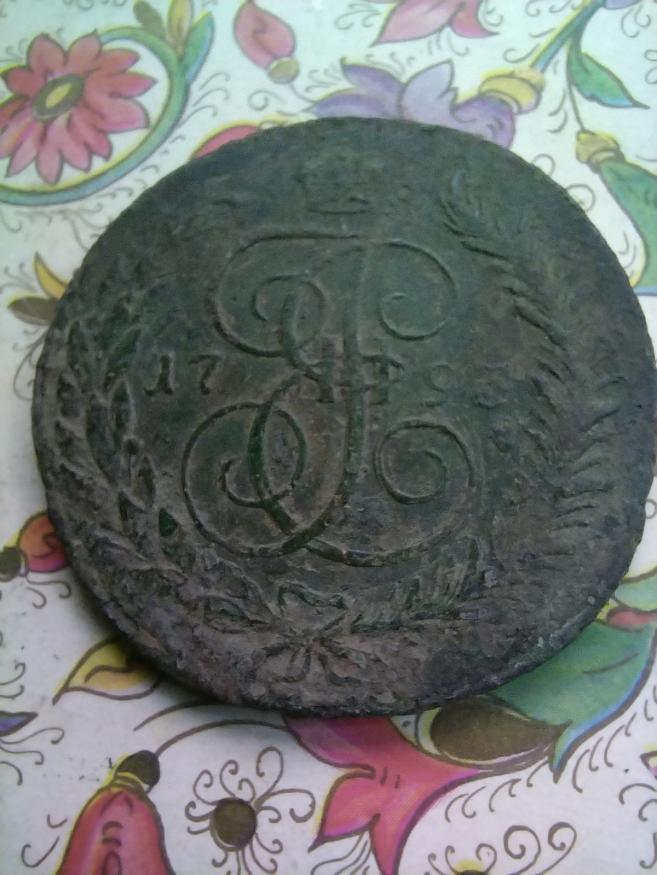 Если не ошибаюсь, это питерский пятак, немного реже московского встречается. Гурт не в фокусе, если по кругу шнур, то это прямой перечекан из 5к 1793 км, такие дороже стоят, если гурт сетка, цена вопроса около 4-5тр