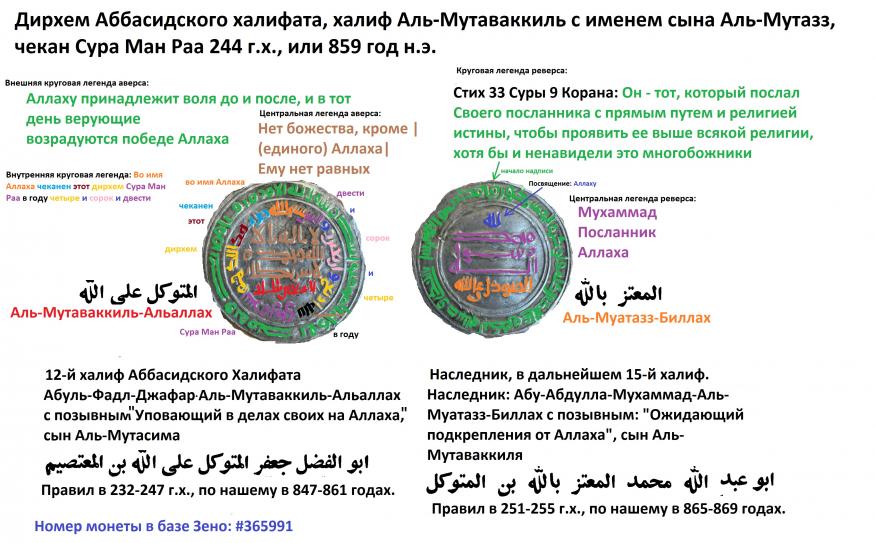 Аббасиды, халиф Аль-Мутаваккиль с именем сына Аль-Мутаз, мд.Сура Ман Раа 244 г.х.