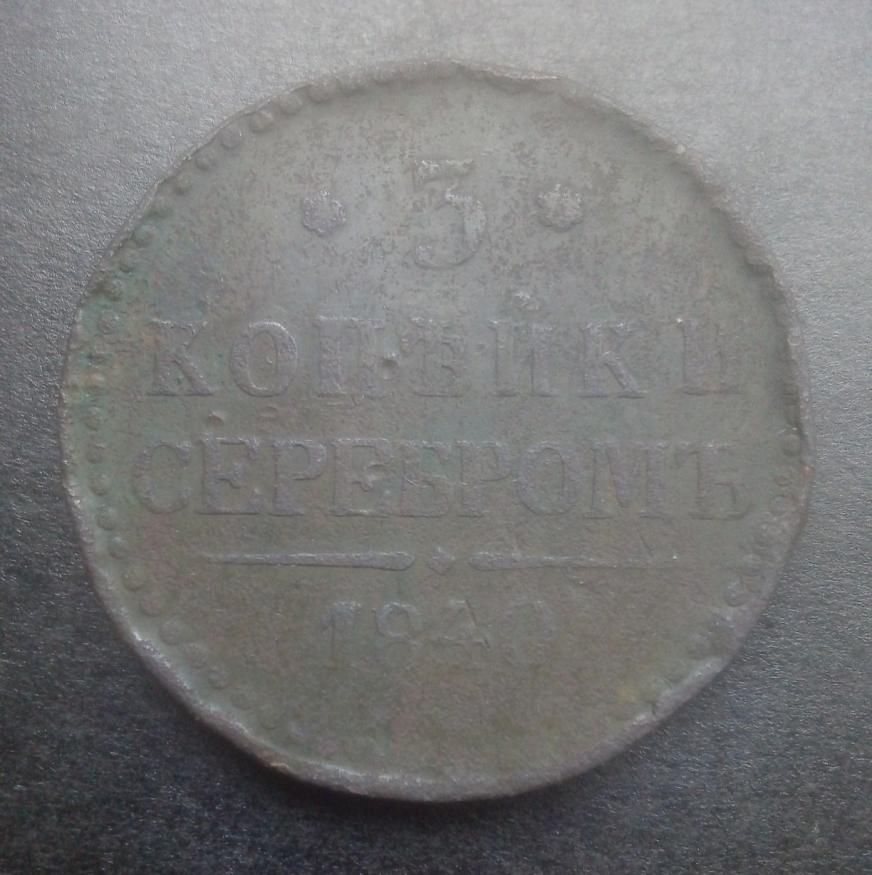 3 копейки серебро 1840 год.Николай 1.Оригинал. Оценка