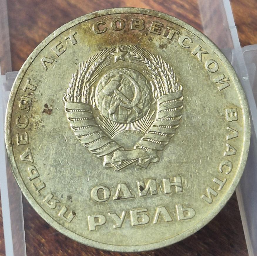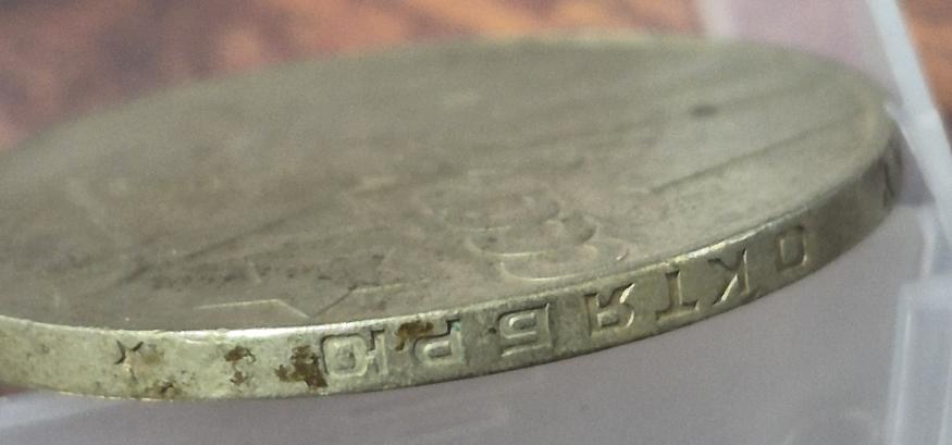 1 рубль 1967 года 50 лет советской власти (брак - перевернутый гурт)