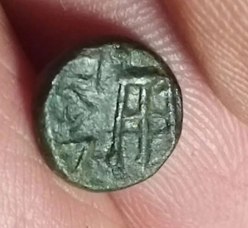 Если сравнивать эту монету с пантикапейским дихалком "Крыло-Треножник" выпуска 230-220 годов до новой эры, то очевидно что перед нами подделка или фальшивка. Её отличия от подлинных монет: она односторонняя; литая; легенда горизонтальная, а не вертикальная; легенда вырезана не в линию, а полукругом вдоль ободка; нет стороны с крылом.