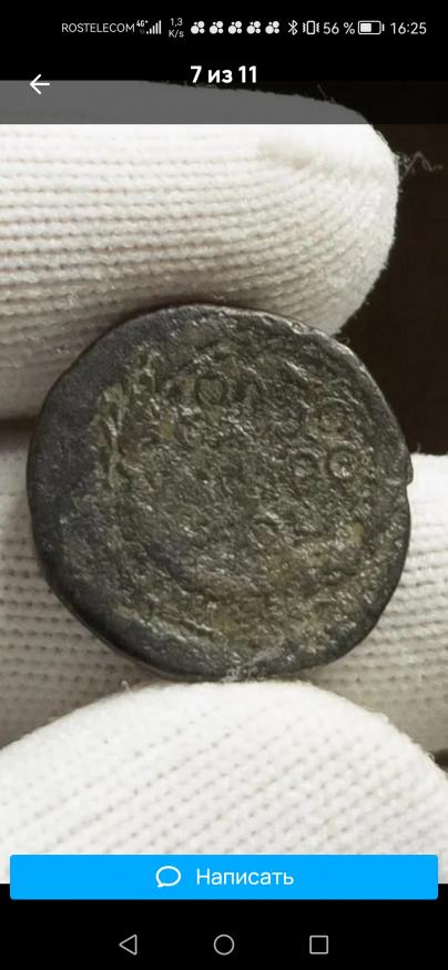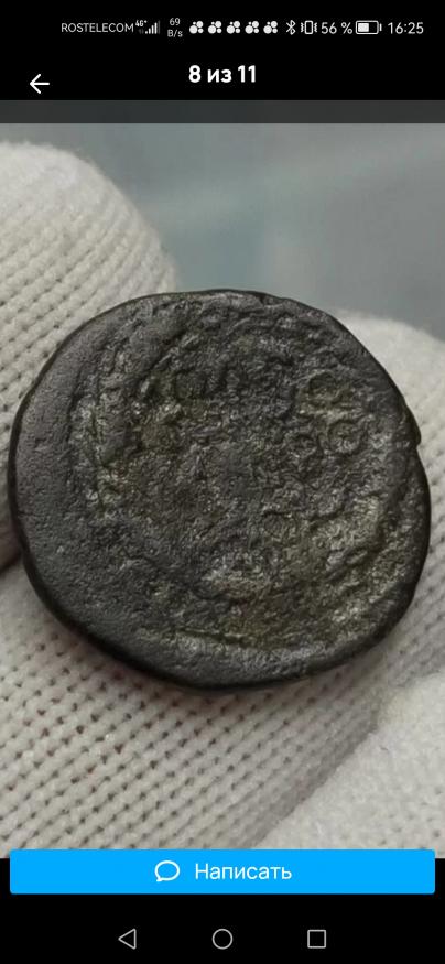 По найденным нами каталожным римским медным монетам с легендой внутри венка мы по аналогии можем предполагать, что наша монета тоже была изготовлена в 1 или 2 веках новой эры. Нигде нет информации о том, что на Тамани в тот период обращались варварские медные подражания. В 1 веке на Тамани жили племена меотов, это предки нынешних адыгов. Также там жили восточные сарматы, пока их поголовно не истребили римляне вместе с союзниками. Во 2 веке не а Тамани поселились остатки остготов, которые со временем "ославянились". Экономика этих сообществ была достаточно примитивна и не нуждалась в ходячей медной монете. Полагаю, что монета попала на Тамань из другого региона вместе с путешественниками-купцами или войском. Надо посмотреть выпуски монет 1-2 веков у соседних черноморских государств.