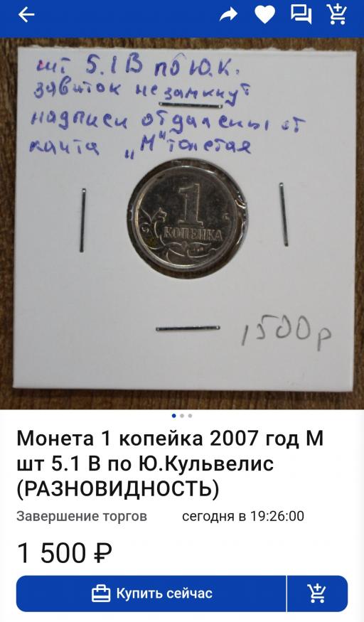 Эта копейка имеет большое число разновидностей. Эта Московский двор. Штамп 5.1 - на реверсе завиток не замкнут и не касается Канта. Аверс штамп В. Это самый дорогой разновид номер 6 с каталожной оценкой 1500 рублей. На мешке есть такая монета. За нее именно столько и хотят.