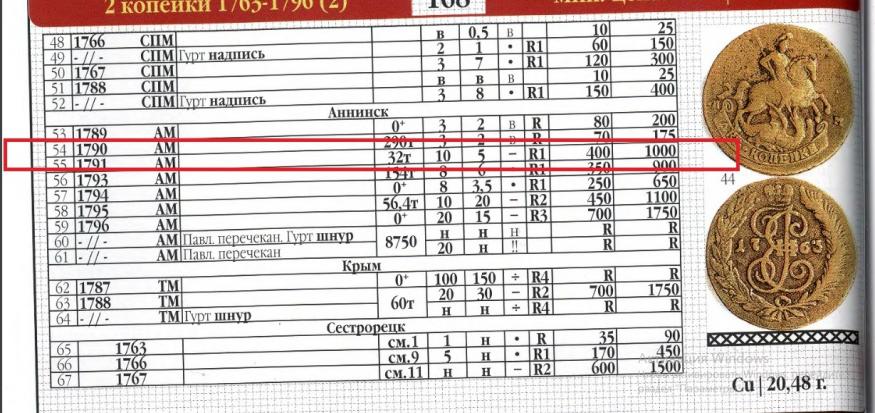 2 копейки 1791 года на оценку