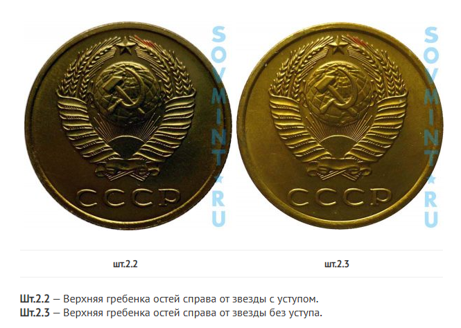 Всем здравствуйте! Прошу уважаемых форумчан оказать помощь в определении разновидности (номер штампа) 1 копейки 1973 года, есть уступ или нет?
