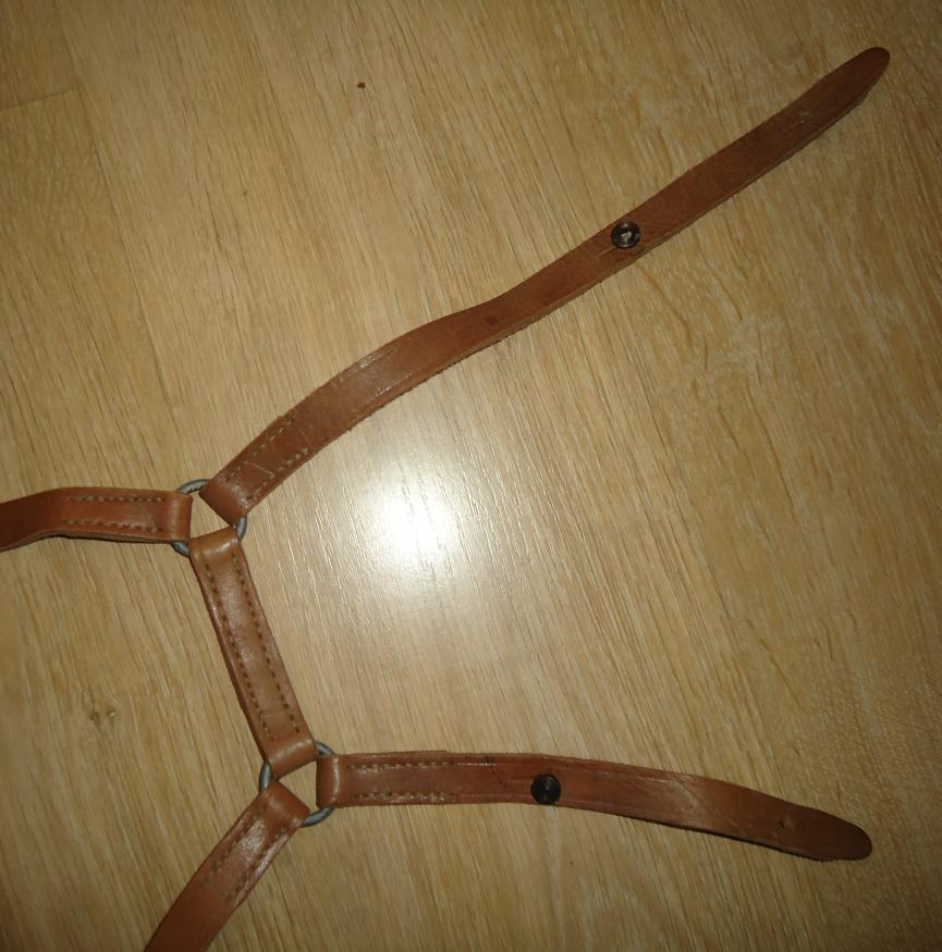 Подвес для шашки через плечо кожаный . Состояние - склад , не использовался . Оригинальные шпеньки стояли из цинка не надежные , заменил на ново дельные крепкие . Цена 1500 р.