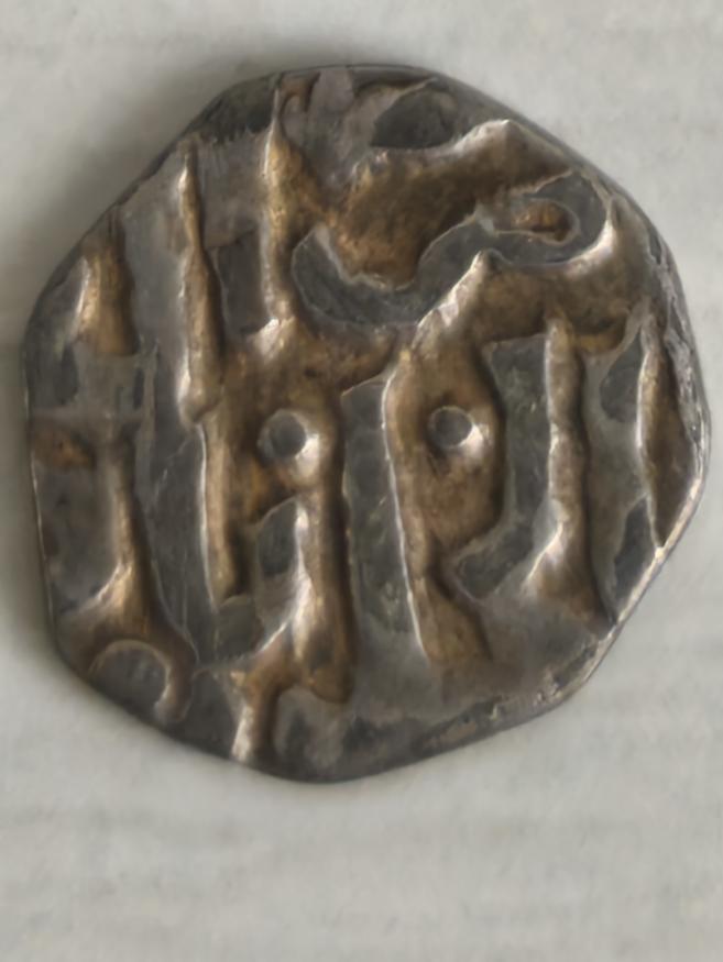 Павел, это подражание дирхему выпуска монетного двора Сарая ал-Джедид. Вместо имени правителя здесь каракули. В имеющихся у меня каталогах подражаний этой монеты нет. Надо выяснить вес монеты для дальнейшего поиска.