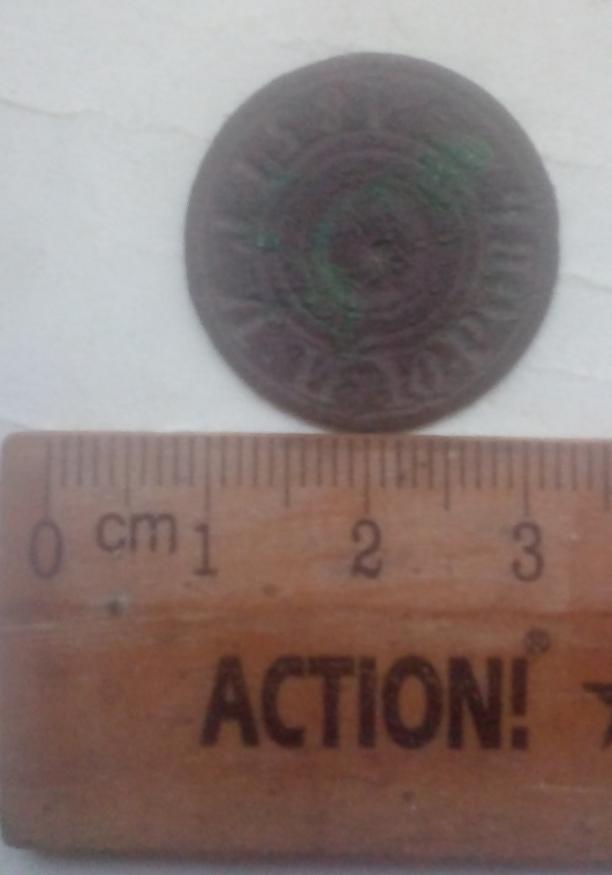 Здравствуйте. Нашел вот такой круглый предмет,не могу разобраться,что это такое. Металл не магнитет, тяжеловатый. Прошу Вас помочь мне в идентификации данного предмета. Заранее благодарен. С Уважением,.....