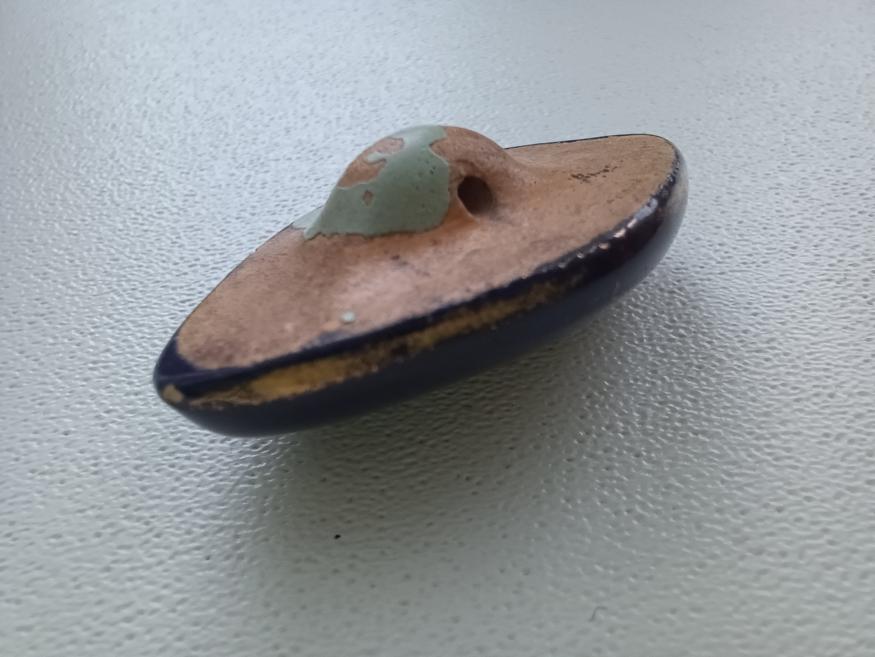 Друзья, подскажите пожалуйста, что это за пуговица.С виду она керамическая,покрыта эмалью и позолотой по краю.Была запачкана краской.На фото видно.В каких годах носили такие пуговицы и если можно,подробнее про пуговицу.Здесь знатоки высшего уровня.Заранее благодарю.
