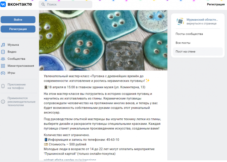 В Мурманском областном художественном музее проводятся мастер-классы по изготовлению керамических пуговиц и покрытию их глазурью. Значит в области имеются давние традиции работы с керамикой. Пишут, что в старые времена летом крестьяне работали в поле, а зимой занимались производством кухонной керамики из местных глин. Сейчас в городе есть мастерские по производству керамической бижутерии и пуговиц. Только пуговиц на ножке у них я не нашел.