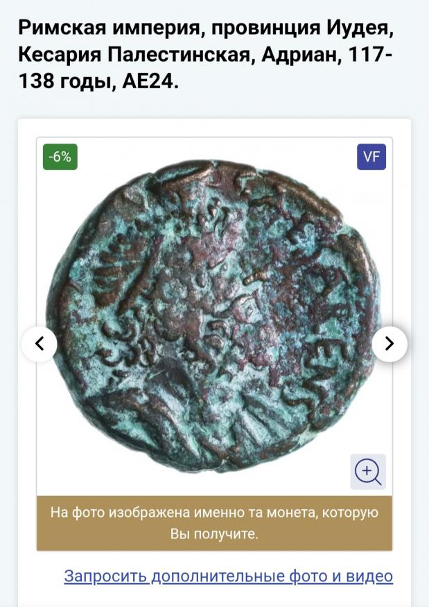 Анатолий, спасибо. Сейчас постараюсь загрузить фотоСудя по одной стороне и легенде на ней, это может быть монета императора Адриана, Римская империя, провинция Иудея, Кесария Палестинская, 117-138 годы. Но если покажете другую сторону, это может оказаться другой выпуск Адриана.