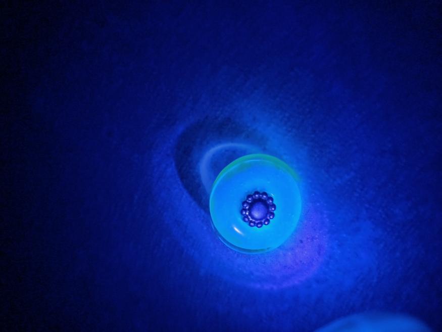 Здравствуйте друзья. Есть в наличии разные урановые пуговицы. Всё буду продавать. Вопрос следующий, так как я в этом виде коллекционирования недавно, мне интересно,почему пуговицы светятся по интенсивности не одинаково? Есть пуговицы,которые наливаются густым зелёным цветом,а есть которые слабо светят,есть которые имеют желтоватый отлив. К сожалению, на фото не получилось идеально передать свечение,так как фонарь садится, плохо светит. Перед продажей наверное буду замерять излучение. Много их у меня. Все пуговицы старые,стекло. Заранее благодарю за ответы.