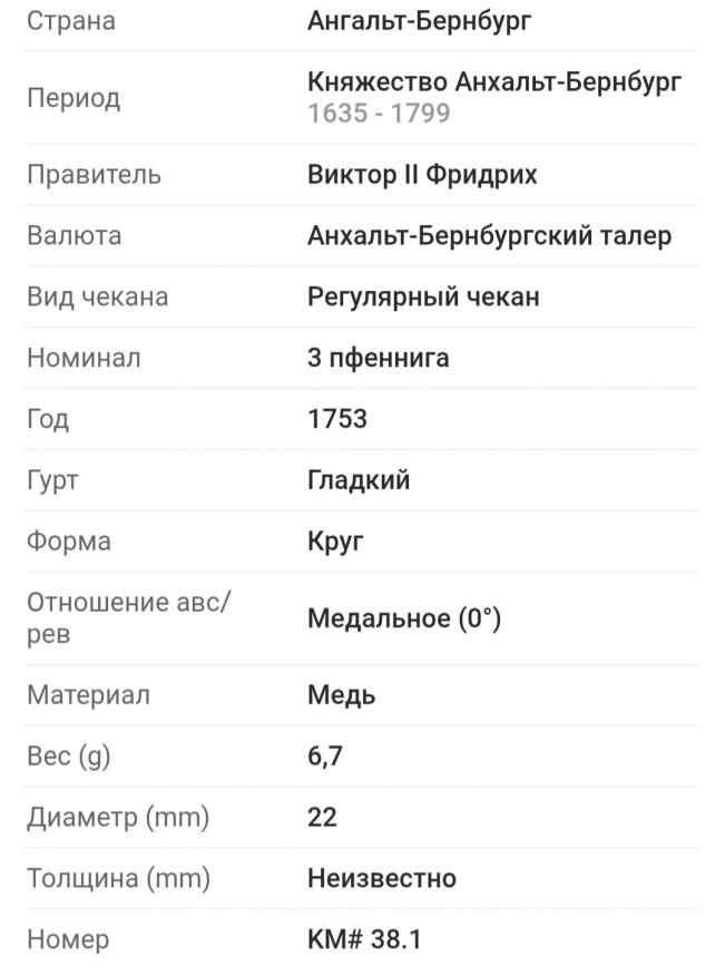 Спасибо, Михаил!!!Здравствуйте. Монета Ангальт-Бернбург (Германские государства) 3 пфеннига 1753 года.