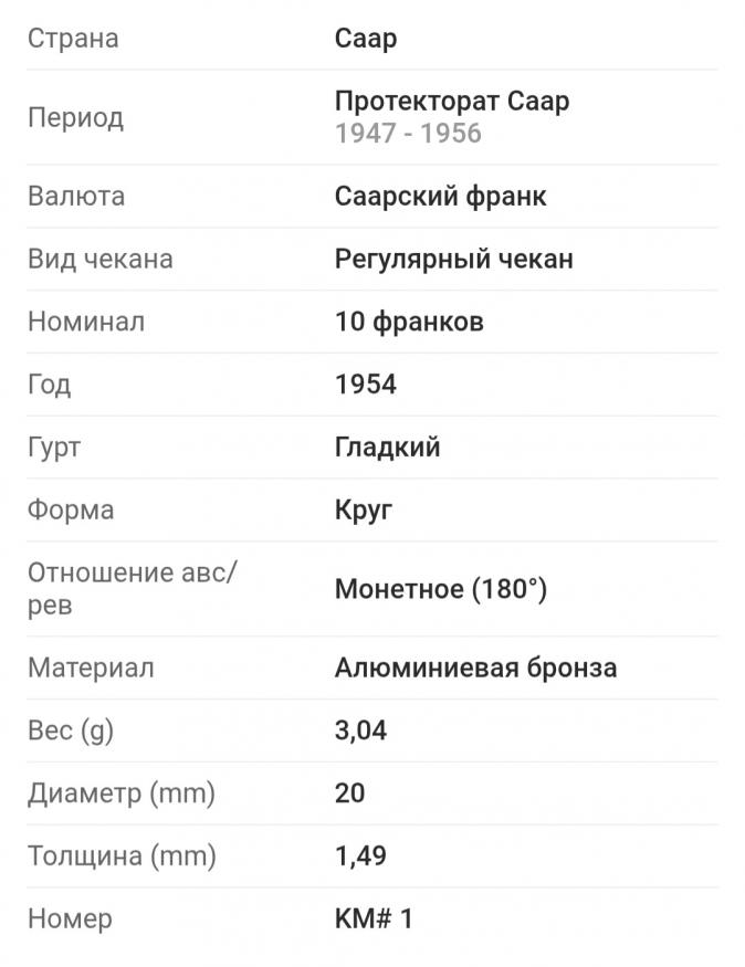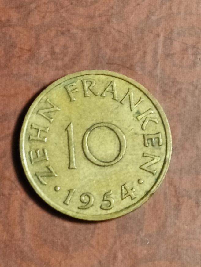 Здравствуйте. Саар (Протекторат Саар) 10 франков (francs) 1954 год.