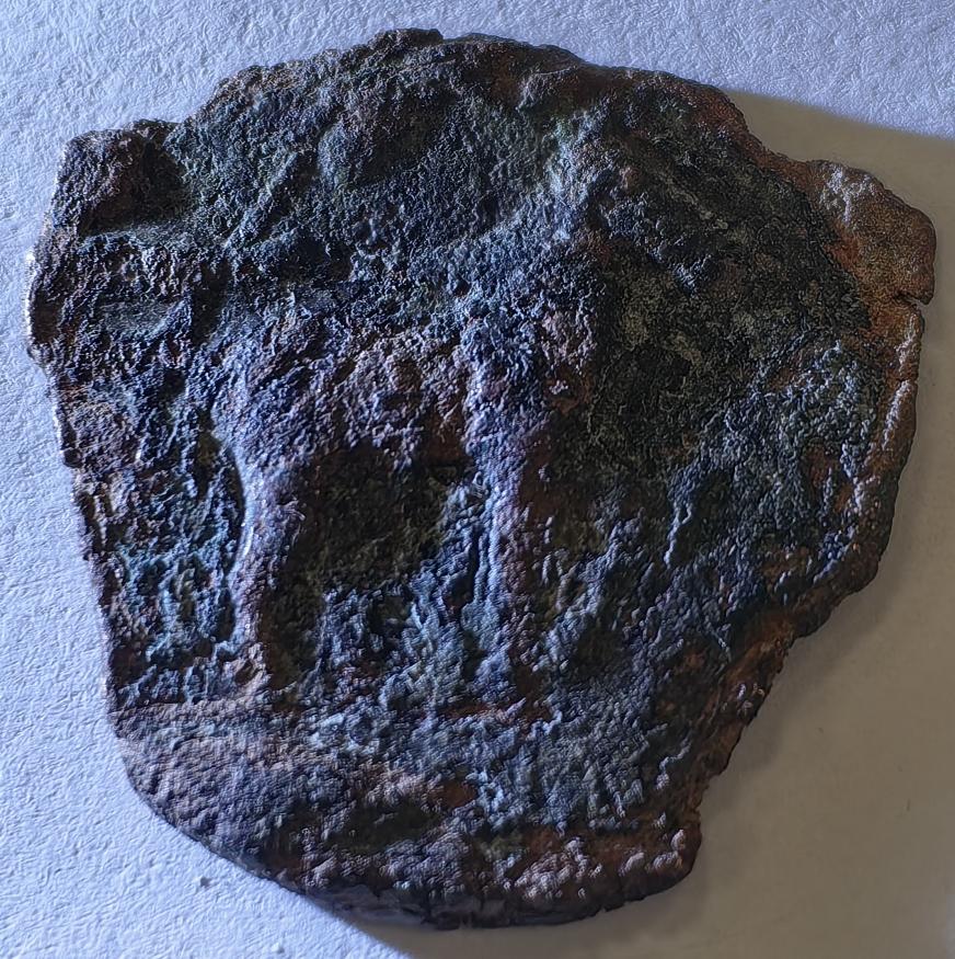 Вес 4,89 гр. Диаметр 22,5-25 мм. Толщина 3,5 мм. Материал с красным цветом, вероятно с высоким содержанием меди.