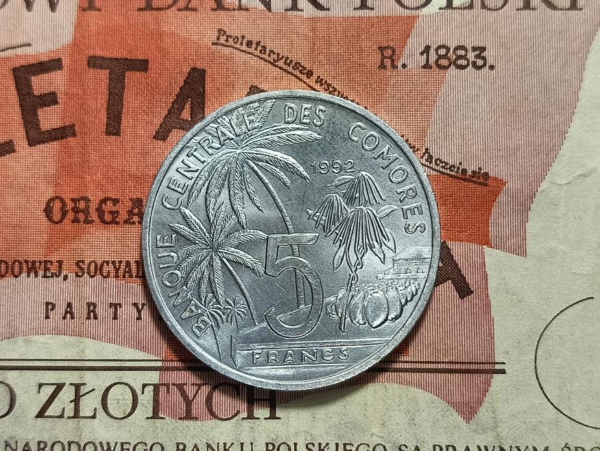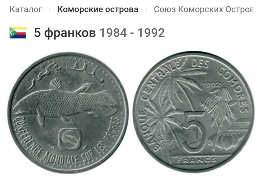 Всё верно. Если монета учтена под номером в каталоге Краузе, значит она выпущена для обращения.Здравствуйте. Коморские острова 5 франков 1992 год. FAO (ФАО) - Всемирная конференция по рыболовству.