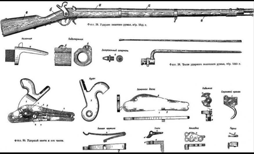 Следует отметить, что ружье весило 4,33 кг без штыка и 4,7 кг со штыком, а стреляло оно пулей весом 27,98 г. при заряде пороха 8,53 г.