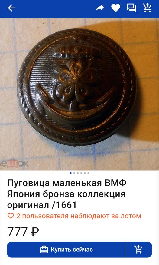 Здравствуйте. На Вашей пуговице цветок сакуры на фоне якоря — эмблема Императорского флота Японии.
