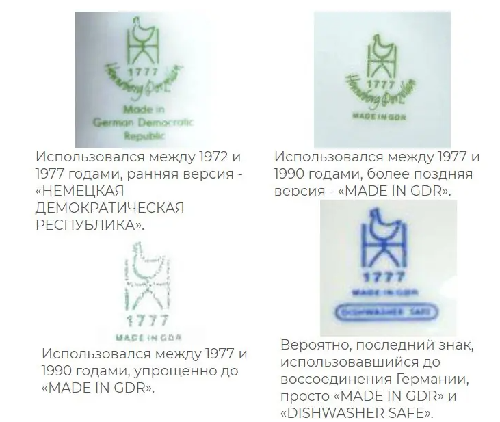 Клейма с посуды, выпущенной на Новом фарфоровом заводе Ильменау (1973-1991)