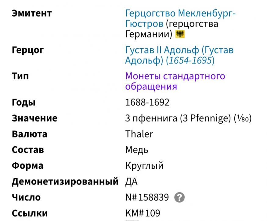 Здравствуйте. Медная монета из Мекленбург-Гюстрова, номиналом 3 пфеннига 1692 года выпуска.