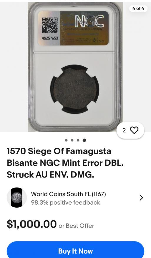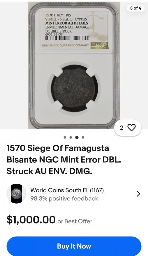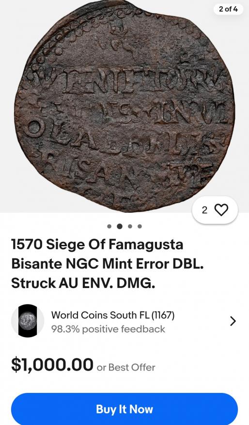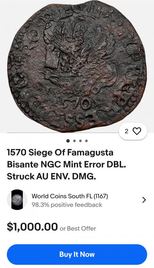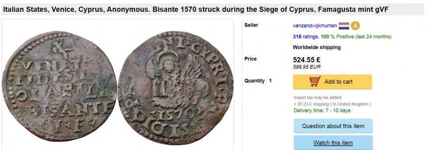Спасибо, Анатолий! Жаль, что это импортные сайты. Сколько она в России стоит интересно. Будем искать. Помимо этой монеты нашел еще экземпляры. Возможно они тоже из Фамагуста, только более ранние. На Нумиста так же нашел похожий на одну из монет экземпляр.
