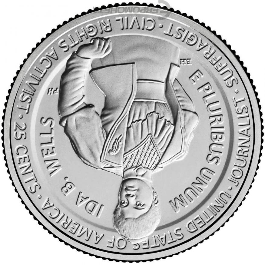 В данный момент я хотел бы узнать стоимость США 25 центов ( 1/4 доллара, квотер ) 2025 Женщины Америки. №16 Ида Белл Уэллс-Барнетт D реверс 180 градусовЗдравствуйте. Существует такое понятие, как медальная и монетная ориентация монет. Оно описывает взаимное расположение аверса (лицевой стороны) и реверса (оборотной стороны) монеты.